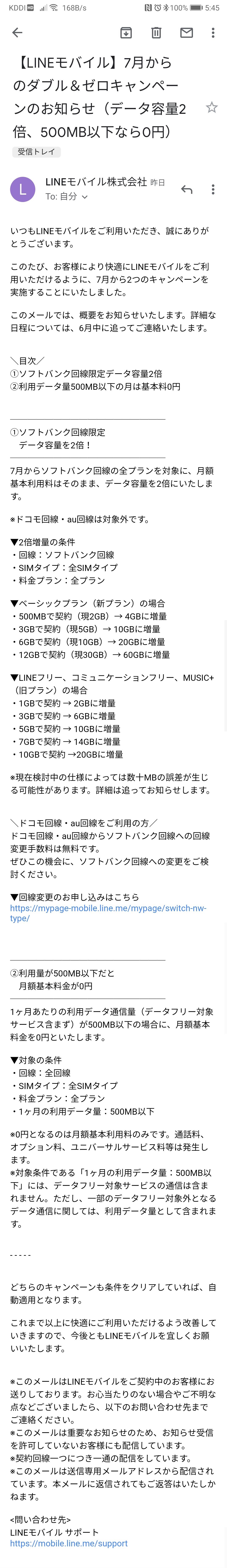 そんなLINEモバイルからメールが来た