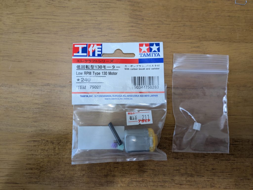新品モーターをゴミにして、欲しい部品1個だけ取るとか正気じゃないですが、同部品の単体販売は田宮模型では存在しないようです。