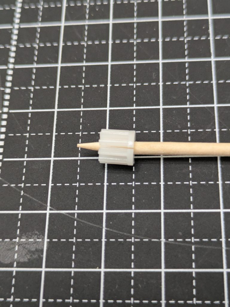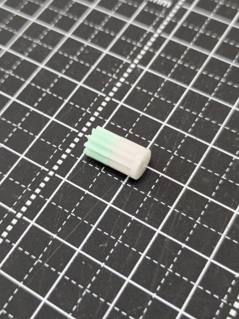 ピニオンギアは上記の部品なのですが、モーターの軸を押し込んで使う為